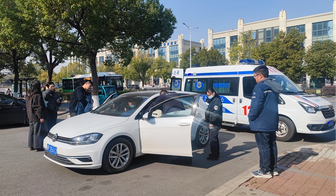 當天,郁震一行午休時在中國十七冶技術中心大廈北側的湖南路散步,聽到附近小孩哭聲后,迅速趕到前方一輛亮起紅燈、打著雙閃的轎車,發現車內一名女司機呈現昏迷狀態,身體蜷縮,隨時可能暈倒。楊天亮與焦元耀第一時間安撫小孩情緒,打開車窗通風;秦玉歡與徐莉摘下女子口罩,放倒汽車座椅,讓女子更好休息;與此同時,郁震已經撥通急救中心電話,“我們在中國十七冶技術中心大廈西北交叉口以西50米,發現一名突發疾病的患者,意識模糊,情況危急,請迅速救援!”在救護車到達現場后,大家在與救護人員溝通病情的同時又暖心地安撫患者和小孩。在中國十七冶職工的幫助下,12時20分,患者被緊急送至附近醫院。