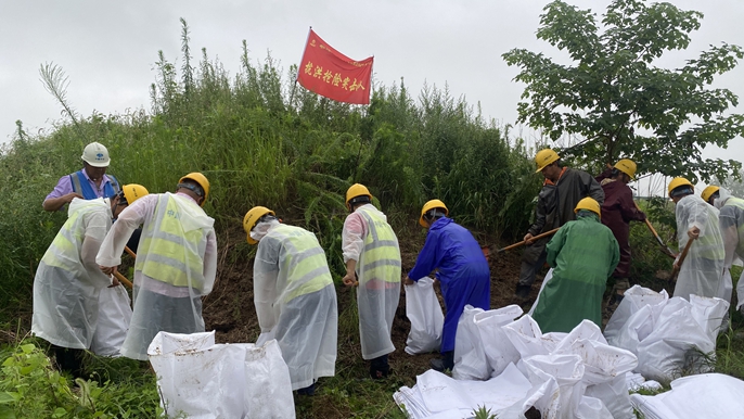 接到豐樂鎮政府動員通知后,當日下午3點,項目立即組織40多名項目管理、作業人員,冒雨前往豐樂河大壩裝沙袋、筑堤壩,僅2小時便完成了豐樂河鐵路段400米長堤壩的加高加固工程,為沿河低洼地段建起一道安全屏障,有效保護群眾生命財產安全,用實際行動彰顯了十七冶的責任與擔當。