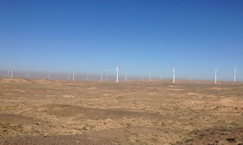 中國十七冶集團風(fēng)力與太陽能發(fā)電工程技術(shù)公司承建的三峽新能源甘肅金昌紅山梁、紅崖山風(fēng)電項目位于甘肅省金昌市以北18公里處的金川區(qū)雙灣鎮(zhèn)紅山梁、紅崖山地區(qū)的戈壁灘上。總裝機容量為99MW,包括66臺單機容量為1.5MW的風(fēng)力發(fā)電機組。在施工期間,全體員工克服了夏季高溫炎熱、風(fēng)沙大,風(fēng)機設(shè)備供貨滯后等不利因素,僅用了99天就保質(zhì)保量地完成了全部66臺風(fēng)機的安裝工作,得到了三峽集團及三峽新能源公司的高度贊揚。