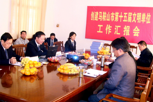 檢查組在聽取匯報后,對裝備制造公司三年來文明單位創建的工作成果和轉型發展業績給予了充分的肯定。市委副秘書長吳秀華同志代表檢查組提出三點希望:一是希望裝備制造公司作為市級文明單位,在抓好基礎性工作的同時,要結合“十二五”企業發展規劃,盡早考慮長遠的精神文明建設規劃;二是公司在社會主義核心價值觀的實踐中有新的動作、新的辦法、新的突破,在馬鞍山市創建文明城市工作大提升的時候,要有更高的擔當;三是希望公司毫不松懈地抓好環境衛生,文明施工,包括“門前三包”,做到十七冶施工到哪里,就能將文明單位的風尚帶到哪里,為馬鞍山市文明城市的創建工作添磚加瓦。