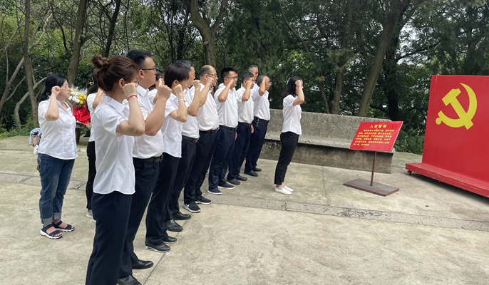 活動中,全體黨員在烈士紀念館前,莊嚴肅立,面對鮮紅的黨旗,舉起右拳,重溫入黨誓詞。之后,全體成員來到革命烈士紀念館,通過觀看史料、聆聽講解等方式,詳細了解先烈們的英勇事跡。