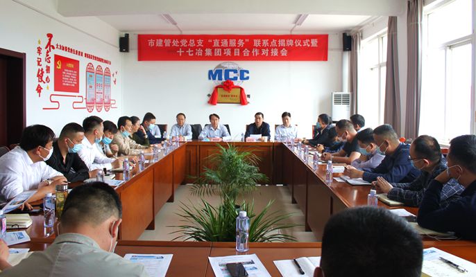 430日下午,馬鞍山市建管處黨總支“直通服務”聯系點揭牌儀式暨中國十七冶集團項目合作對接會在達成公司舉行。市住建局黨委副書記殷積賓,市建管處黨總支書記蘇豐,公司工會主席、副總經濟師魏致家共同為“直通服務”聯系點揭牌。