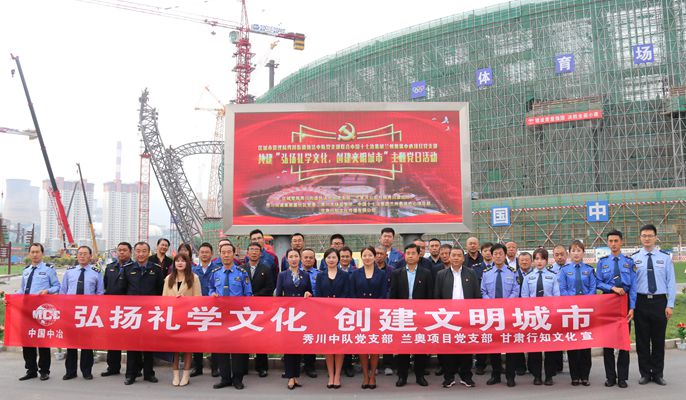 為助力蘭州市創(chuàng)建文明城市工作,9月23日,中國十七冶集團蘭州奧體中心項目黨支部聯(lián)合七里河區(qū)城管局秀川街道執(zhí)法中隊黨支部、秀川派出所黨支部、崔家崖社區(qū)黨支部、秀川食藥監(jiān)所黨支部等,共同開展“弘揚禮學文化,創(chuàng)建文明城市”主題黨日活動。