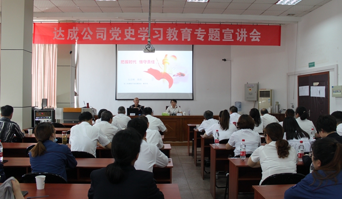 為深入開展黨史學習教育,切實提升黨員干部黨性修養,5月27日下午,達成公司黨委召開了黨史學習教育專題宣講會。公司全體黨員和各級非黨員管理人員50余人參加了學習。