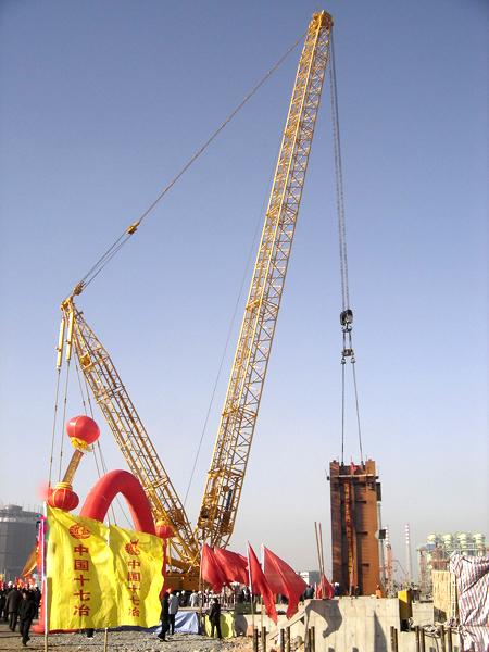 350噸履帶式起重機在馬鋼新區煉鋼連鑄工程施工現場第一吊場景