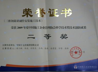 國內工程建設行業最高科技獎——中國施工企業管理協會科學技術獎日前揭曉,十七冶集團共獲4個獎項:十七冶集團公司榮獲科學技術獎技術創新先進企業;城建工程技術公司研制完成的“1000m3鋼筋砼倒錐殼水塔施工工藝控制技術”和路橋工程技術公司研制完成的“三維鋼箱梁制作安裝施工技術”榮獲技術創新成果二等獎;羅東榮獲技術創新先進個人。
