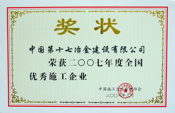 十七冶獲得“全國優(yōu)秀施工企業(yè)”稱號