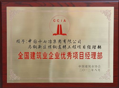 在紀念國務院推廣“魯布革”工程管理經驗交流會暨第十一屆中國國際工程項目管理高峰論壇上,中國十七冶集團南京濱江大道1.1標段項目經理部和馬鋼新區煉鋼連鑄工程項目經理部受到大會表彰,榮獲“全國建筑業企業優秀項目經理部”稱號。