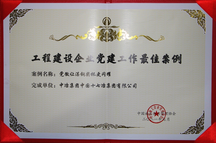 會議還發布了此前開展的黨建工作案例征集宣傳活動結果,經企業申報、發布交流、專家評價、網絡投票,十七冶推送的《黨徽讓湛鋼獎杯更閃耀》黨建工作經驗被納入“工程建設企業黨建工作百項最佳案例”。