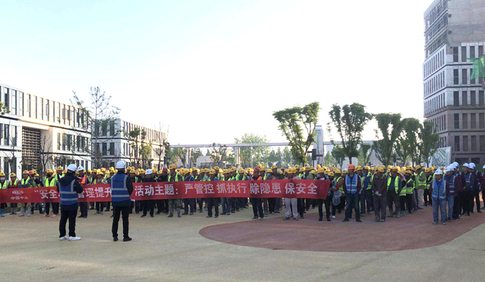 55,中國十七冶集團房屋工程技術分公司宿州生物醫藥項目部組織開展安全教育動員大會,提前部署夏季安全生產工作。
