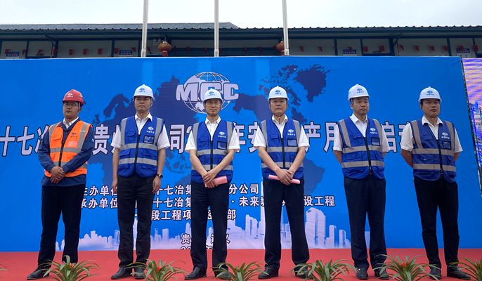 為切實“消除事故隱患,筑牢安全防線”,提升公司安全生產意識水平,6月1日上午,十七冶貴州分公司在遵義廣廈·未來城項目舉行2020年“安全生產月”啟動儀式。中國十七冶集團副總經理、安全總監伍昌國,公司副總經濟師、城建分公司經理楊有誼,貴州分公司經理朱廣劍、黨委書記余志忠、副經理王爭春以及貴州區域、成都區域項目經理,參建協作單位人員代表近200人參加了啟動儀式。